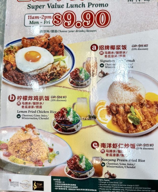 Nan Yang Dao Thomson Plaza $8.80 / $9.90 Promo Set Meal