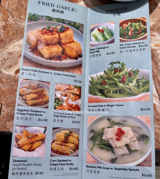 Here are pictures of some pages of the Social Place Singapore menu. It is quite an eclectic menu with a mix of familiar Chinese restaurant dishes (such as sweet and sour pork) as well as dishes that we have not seen before (such as foie gras in Chinese wine).