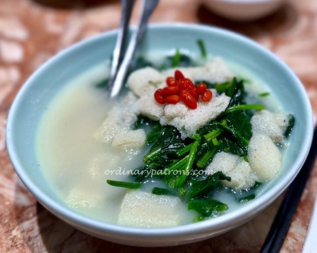 We started with a very conservative choice – bamboo pith and vegetable soup ($16.80). This was a light milky soup. It was a pleasant soup to start a meal.