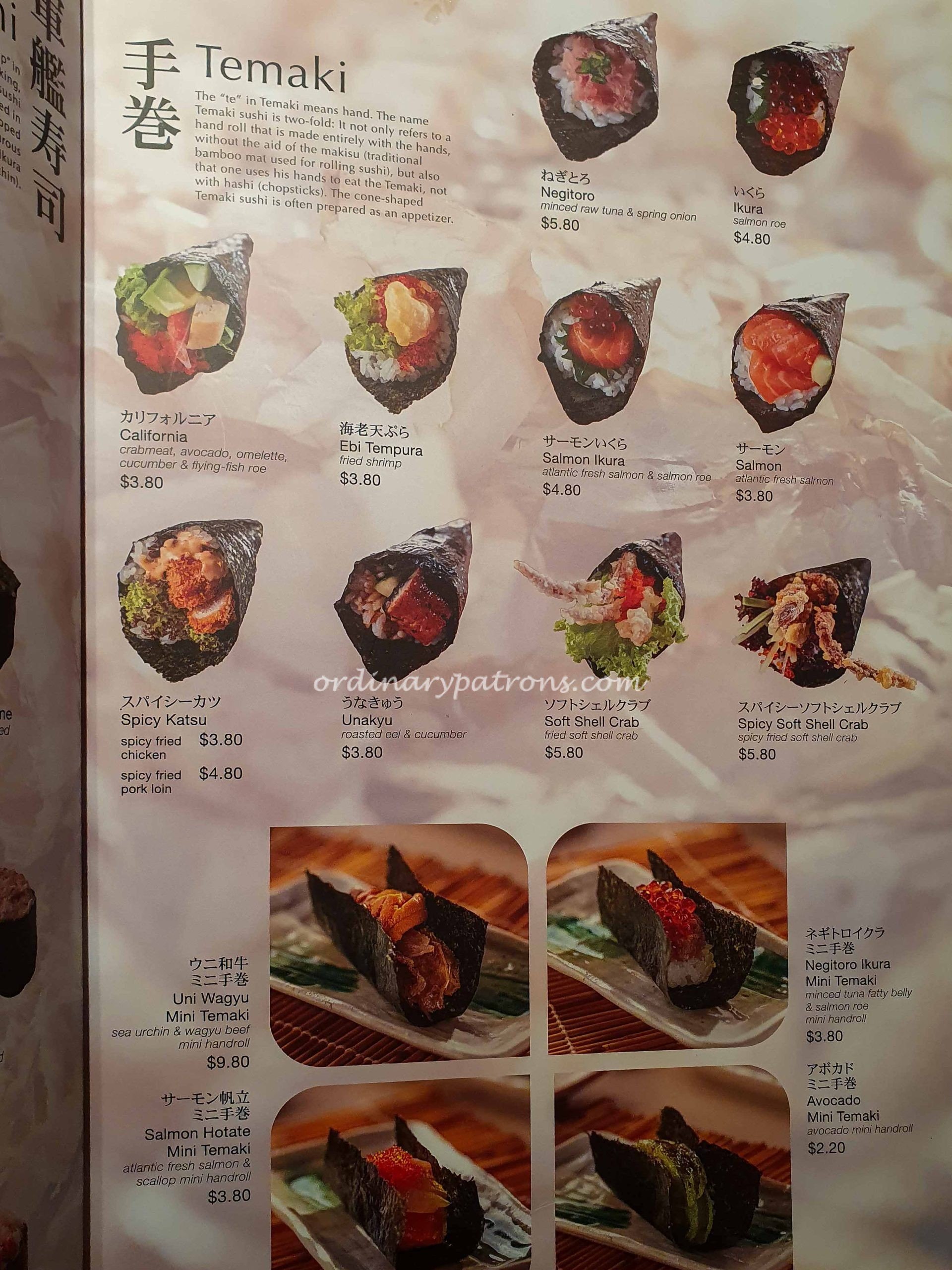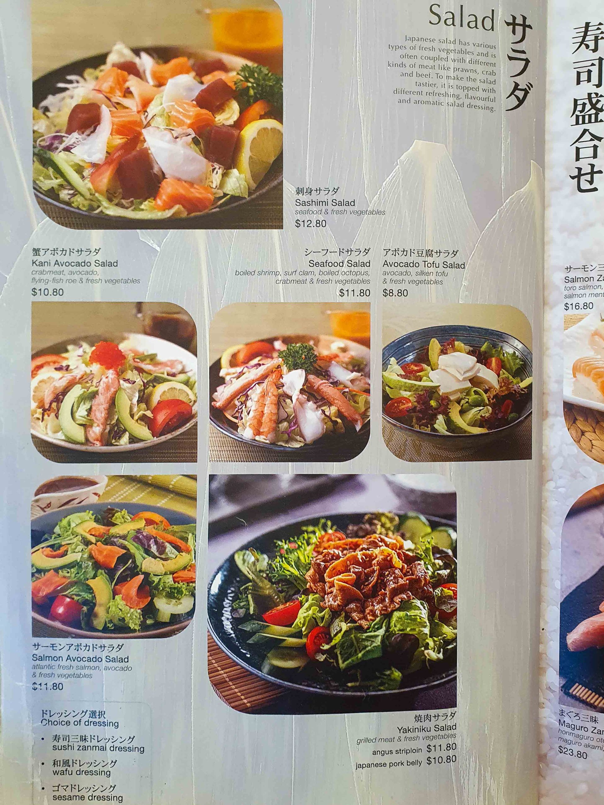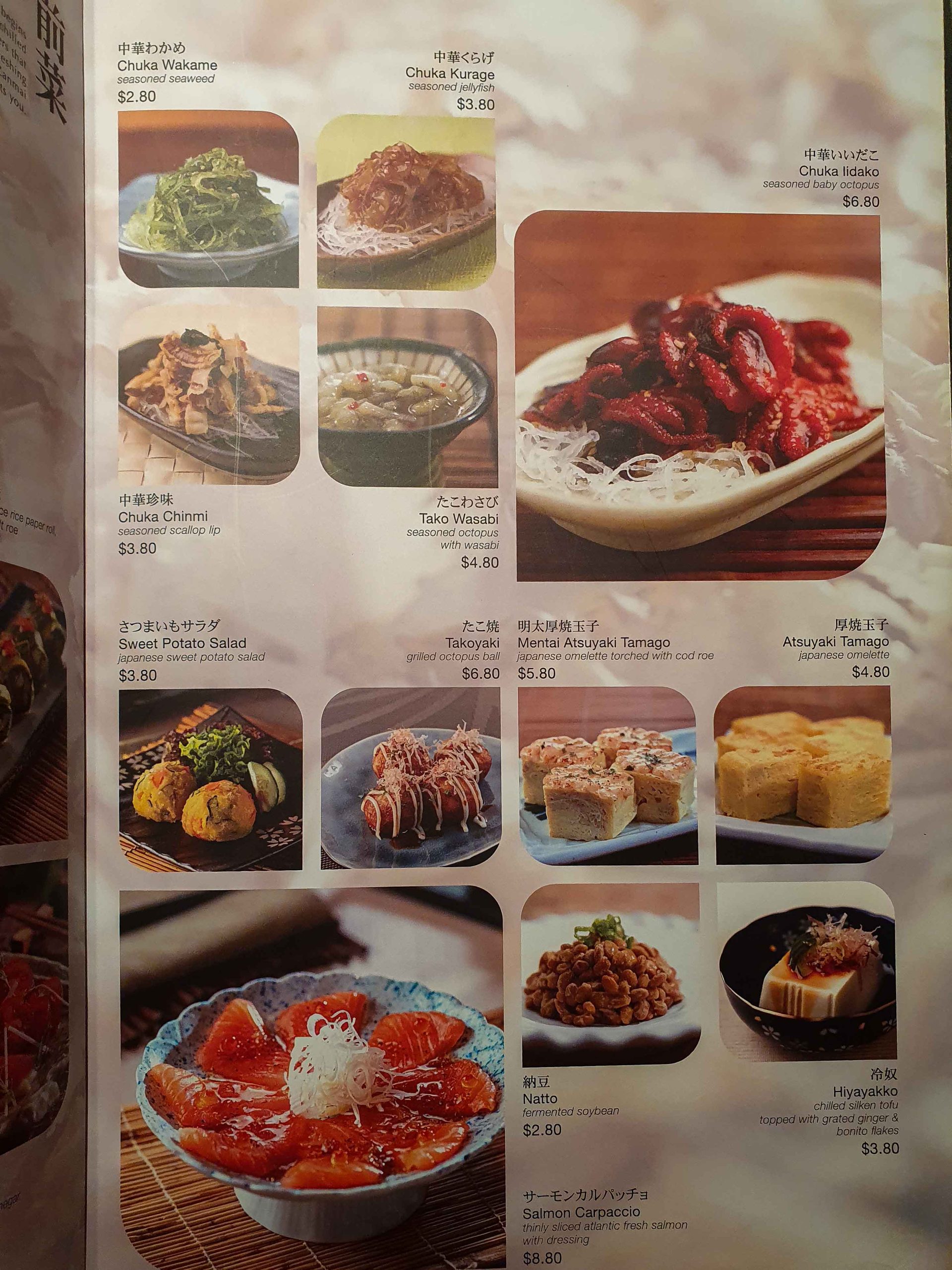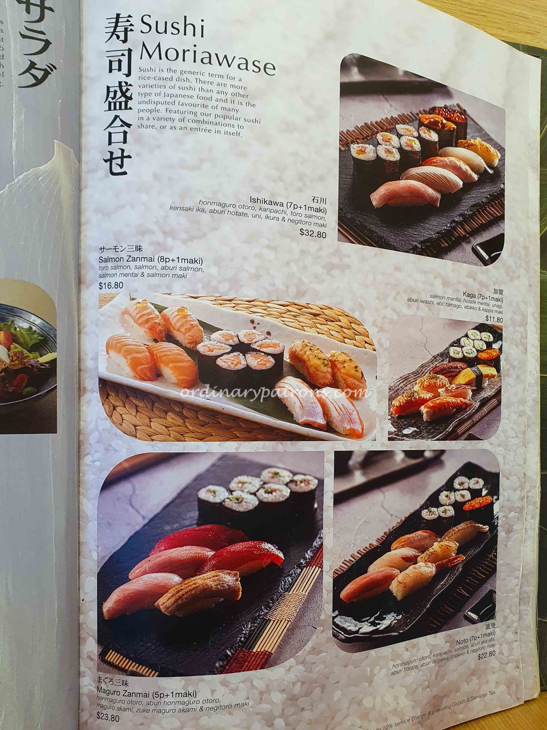 Below are pictures of sample pages of the menu of Sushi Zanmai.