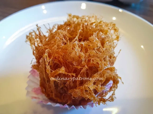 Deep-Fried Taro Puff with Scallop in Curry Paste, Pan-fried Minced Meat Bun, Crispy Sweet Potato Pancake and Glutinous Rice Roll with Chicken Floss wrapped in Banana Leaves were among the other dim sum dishes we tried. They were all interesting and enjoyable.
