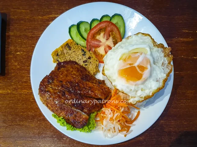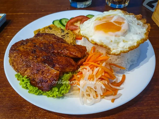 The Grilled Pork Chop Rice was served as a generous one-dish meal. The pork chops had caramelised edges from grilling, with a dark glaze that suggested they had been marinated beforehand. The marinade seemed fish sauce-based, giving the meat savoury and slightly sweet flavours, fairly typical of Vietnamese cooking.