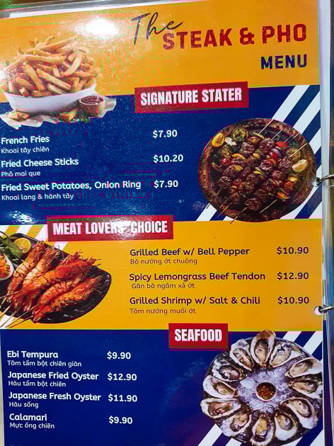 Menu of Steak & Pho