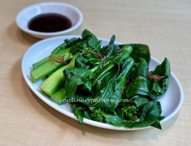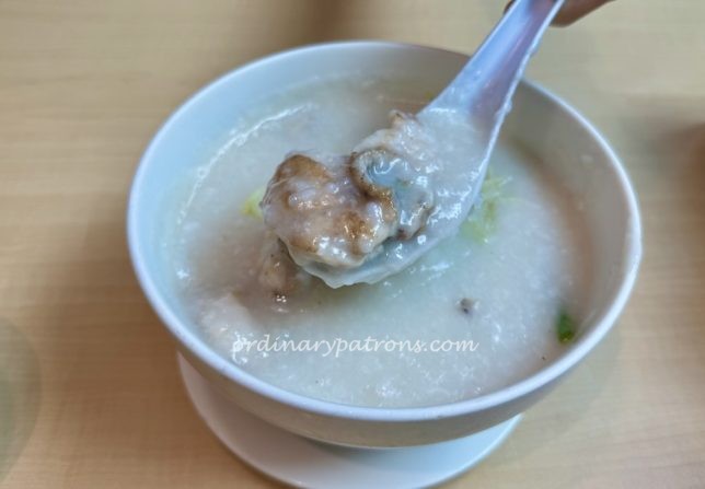 The kai lan looked delicious and full of nutrients with its rich dark green colour. But we thought that the leaves were rather thick and leathery. As the congee was served super hot, we immersed most of the vegetables into it to soften them. It worked satisfactorily.