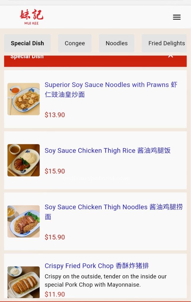 There are also “special dishes” that are not listed in the physical food menu. They appear on the online menu used for ordering. Here is a screenshot of some of them.