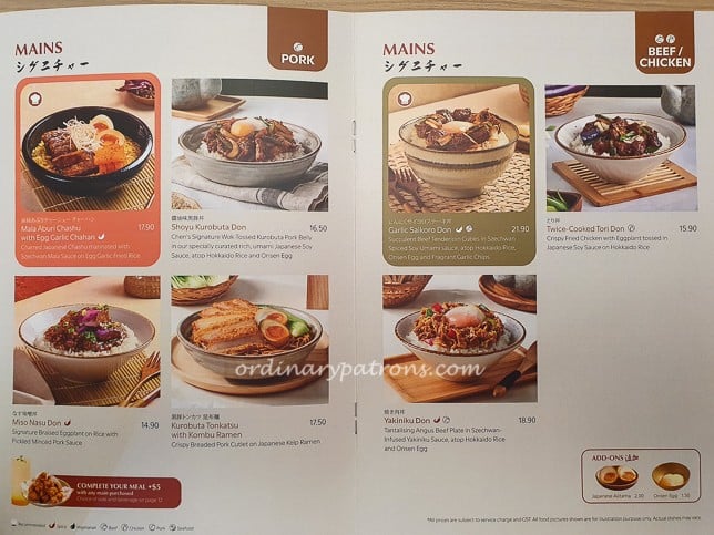 Here are some sample pictures of the menu of Chen’s at PLQ Mall.