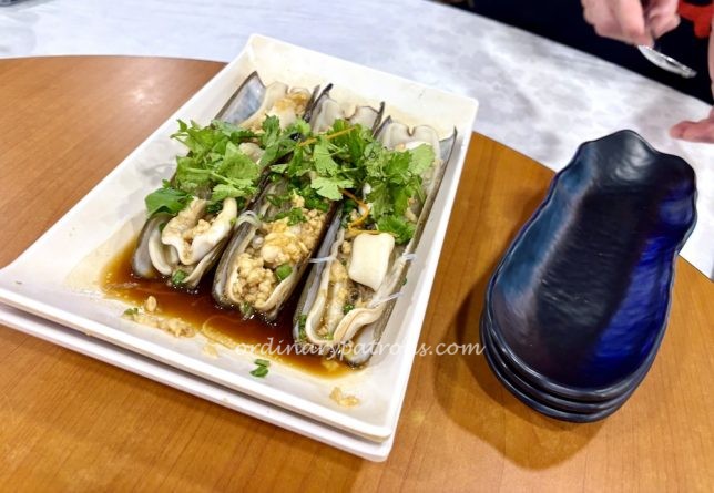From the menu we selected these dishes for dinner : bamboo clams ($15++ per piece), Golden Spoon crispy chicken ($16++ for half chicken), panfried coffee pork rib ($15++) and fried hor fun with deer meat ($24++).
