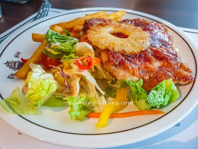 The chicken chop set began with soup – a Mexican chicken variety that day. It was perfectly adequate, neither too spicy nor bland, served piping hot alongside a tall fluffy dinner roll and individual butter portion.