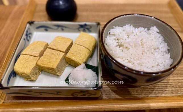 Here are pictures of some pages from the restaurant menu. Thankfully they have a version with English “subtitles”. Soba and tempura seem to be a classic combination. We selected the one that featured extra large prawns – lobster shrimp tempura with soba noodles. We also ordered rice with grilled eggplant with miso sauce as well as rolled omelette.
