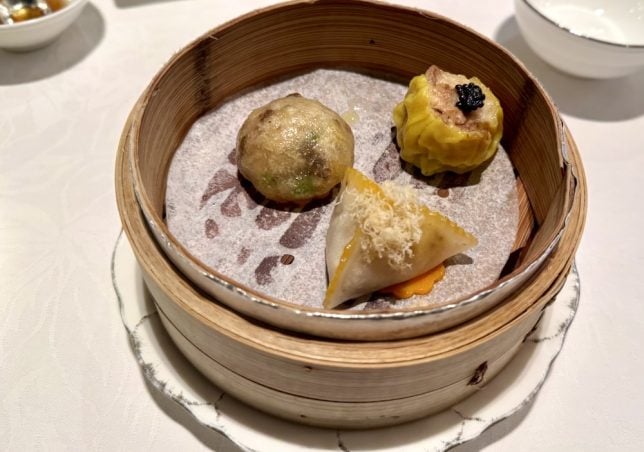 We got to try three kinds of steamed dumplings in the dim sum part of the set lunch. Shrimp shu-mai with caviar and matsutake mushroom, morel mushroom dumpling and crab meat dumpling with truffle sauce. Each quite plain looking but with rich flavours.