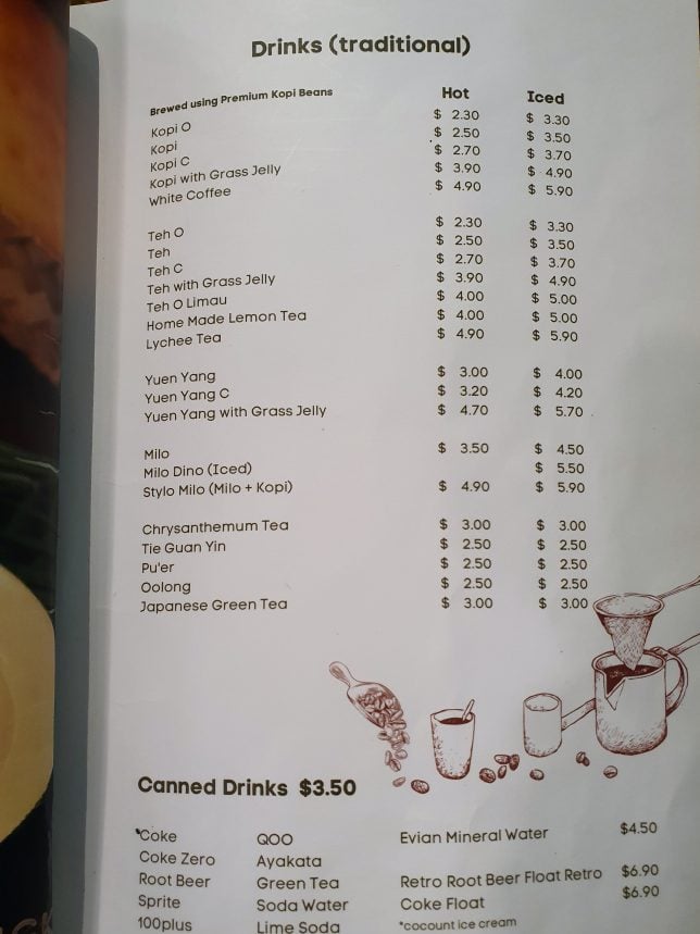 The traditional Kopi ($2.50) and Teh C ($2.70) were of the standard that one would expect from popular chains such as Ya Kun and Fun Toast.
