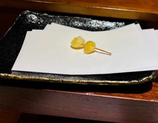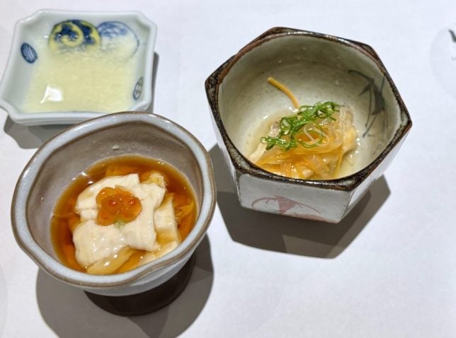 Lunch started with some small appetisers. I believe they were tofu and seafood items.