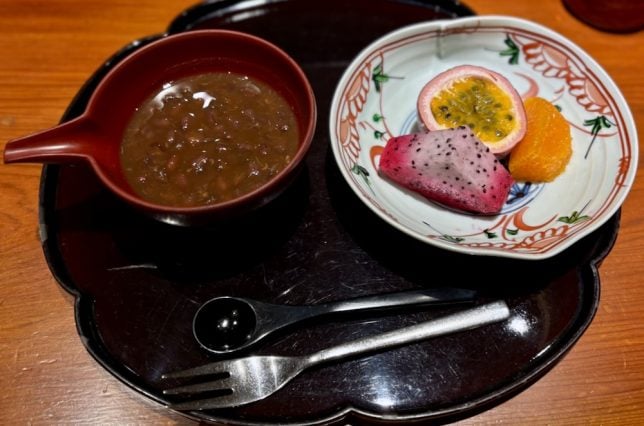 Some fruits and a sweet dessert brought our tempura lunch at Yamazato Okura Taipei to an end.