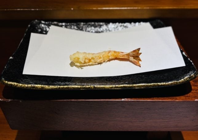 The L-shaped tempura counter seats about ten diners. With a very authentic Japanese tempura counter layout and decor we felt like dining in a good tempura restaurant in Tokyo.