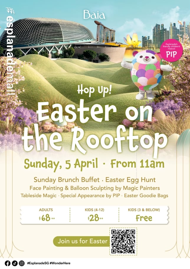 Easter 2026 falls on 5 April, and restaurants in Singapore have themed menus and special activities for the occasion. Families can choose from roof-high dining, waterfront brunches or gourmet options to enjoy at home.