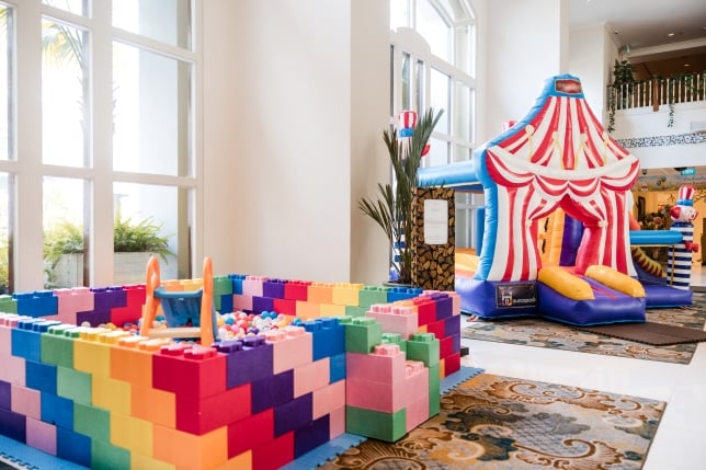 Highlights include a seafood display, Risotto Salsiccia prepared in a Parmesan wheel and slow-roasted prime rib. Children can enjoy a dedicated playground with a bouncy castle and ball pit.