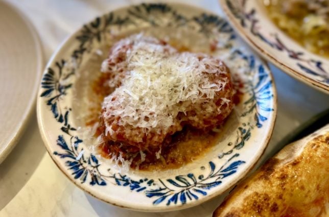 The other two dishes arrived soon after the pizza. Polpette al Sugo ($16, picture above) was a dish of three beef meatballs in tomato sauce. We liked the rich beef taste of the meat balls. The grated cheese was (thankfully) not very strong in flavour and added some complexity to the taste of the dish.