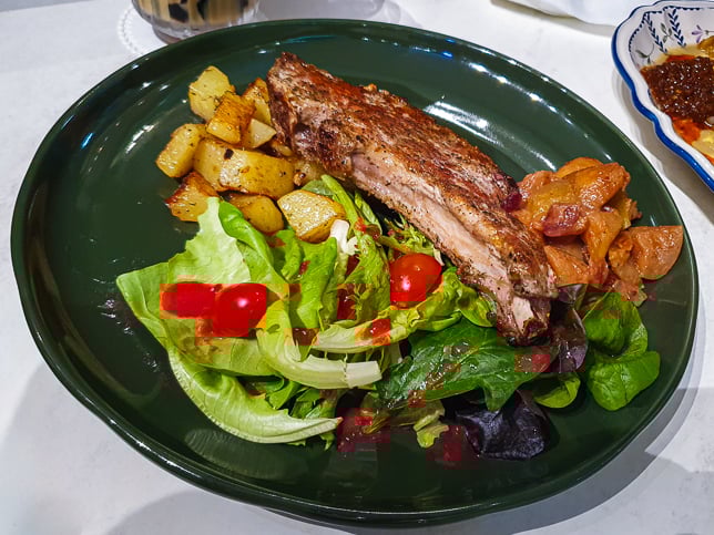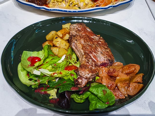 The herb-marinated bone-in pork chop was nicely presented, accompanied by roasted potatoes, apple chutney, and a fresh garden salad. The thick cut of meat was well-seasoned and flavourful, though the generous thickness might have worked against it somewhat as the meat inside was not as moist and tender as we would have liked. The highlight was the apple chutney. Its sweetness contrasted with the savoury notes of the dish effectively. On the whole, a satisfying dish.