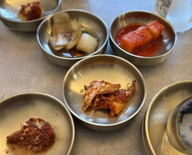 Lunch started with the arrival of a few side dishes (banchan). Compared to other restaurants we tried on this visit to Seoul, these seemed rather basic.