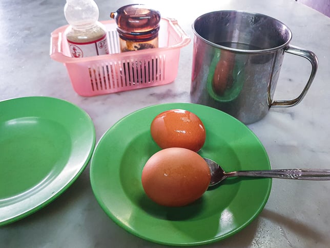We were instructed to wait seven minutes before cracking the eggs. This ritual ensured the whites were just set while the yolks remained runny. It was as close as we could get to having an authentic breakfast expereince of pre-independence Singapore.