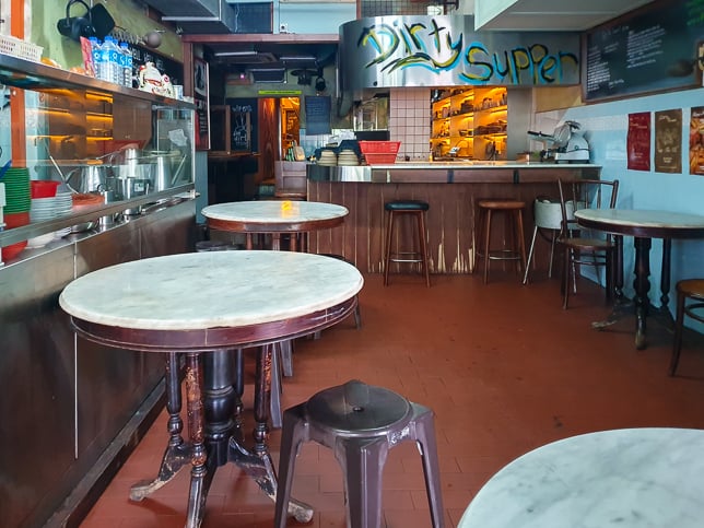 The Moh Guan Terrace space has a unique dual identity. By day, it is a traditional coffee shop serving fishball noodles and local breakfast. However, as evening approaches, the space to the rear operates as a contemprary restautant. Bincho used to be there. Now the premises is occupied by Dirty Supper, a supper-club style restaurant, and Dirty Sips Bar.