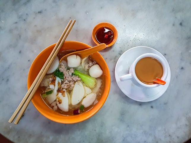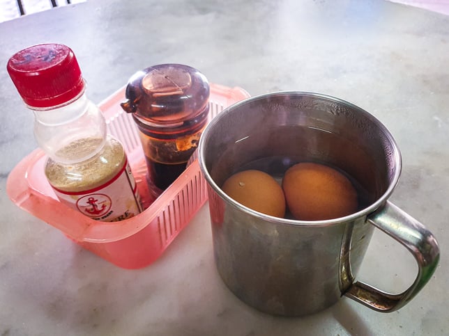 Hua Bee offers the traditional breakfast in the morning. The kopi and teh would be served in simple old school porcelain cups.