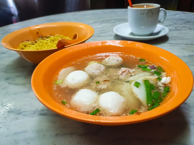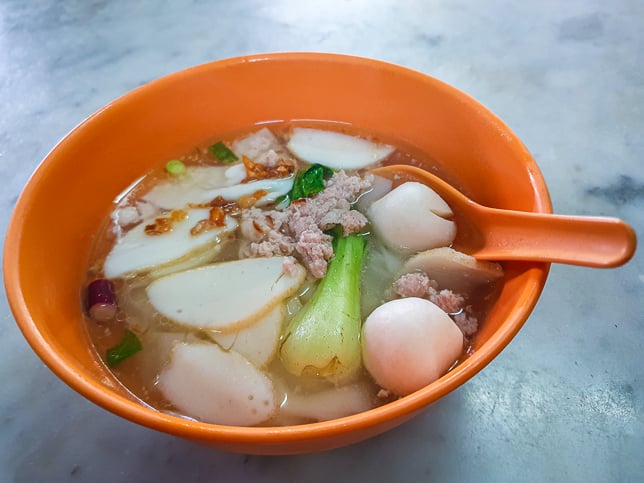 Served in a separate bowl, the soup contained smooth, bouncy fishballs, handmade meatballs with a coarse, meaty texture, sliced fishcake, minced pork, vegetables and garnishes. The clear broth was simple yet flavourful.