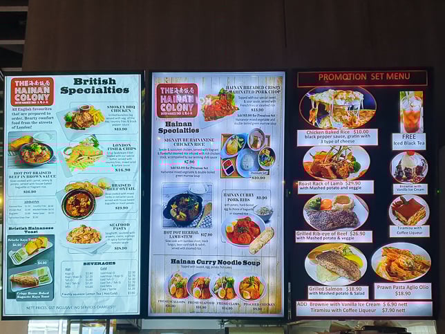 The Hainan Colony #01-26 – serves British-Hainanese heritage cuisine including Hainanese Pork Chop, Fish & Chips and Beef Oxtail.