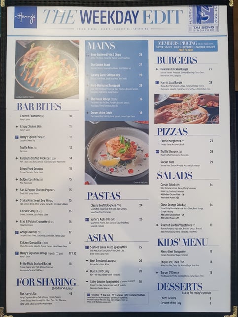 Harry’s #01-K4/23-25 – a place for after-office drinks as well as a wide range of food like Sausage Platter, Chicken & Beef Satay, Sriracha Seafood, Chicken Tandoori Skewers, Pasta and Burger.