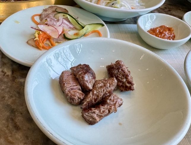 Korean beef or Hanwoo was a dish that we had to try at Samwon Garden Seoul. We decided on a Korean Beef Ribeye (KRW95,000 for 130g). This was rather expensive – more than the total price of our two set lunches. This was the item to be served next.