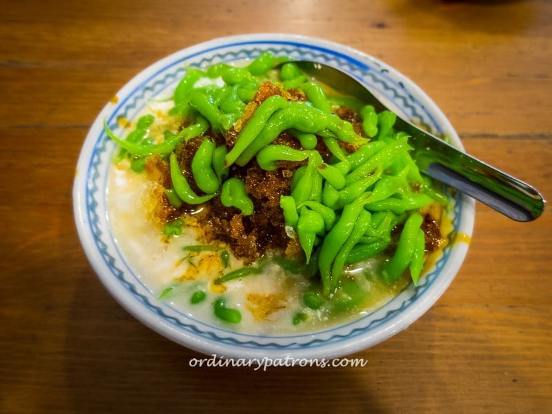 Chendol (Cendol) : A traditional South-East Asian dessert made from shaved ice, coconut milk, palm sugar and jelly noodles made from rice flour with green food coloring (usually derived from the pandan leaves).