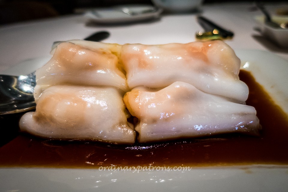 Chee Cheong Fun : A rice noodle roll filled with shrimp, pork, beef, vegetables, or other ingredients; or without filling and eaten with soy sauce, sesame oil, sweet sauce, chilli or a combination of sauces.