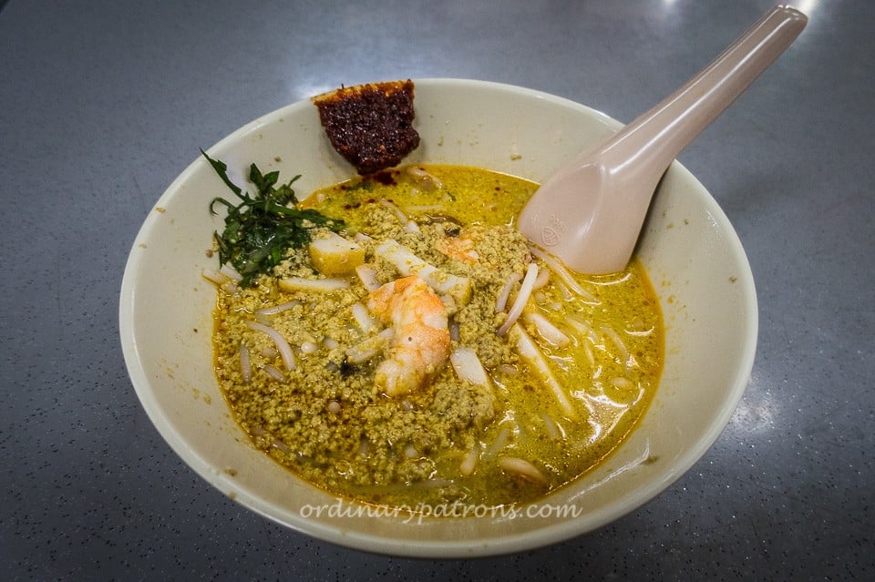 Laksa : A spicy soup noodles dish consisting of rice noodles in a spicy gravy of coconut milk, with toppings of prawns, cockles and slices of fishcake. There are different varieties such as Curry Laksa, Penang Assam Laksa and Katong Laksa.
