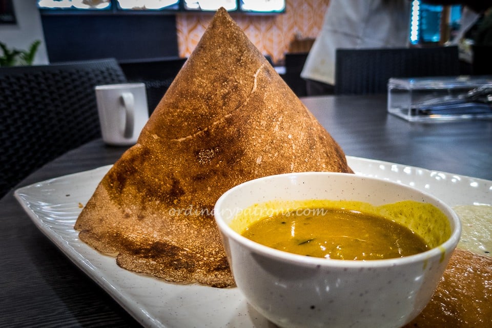 Thosai : A South Indian savoury thin pancake made from a batter of fermented pulses and rice flour, cooked on a flat griddle. The dish is usually eaten at with accompaniments such as vegetable stew, curry and chutney. It is also called “dosa”.