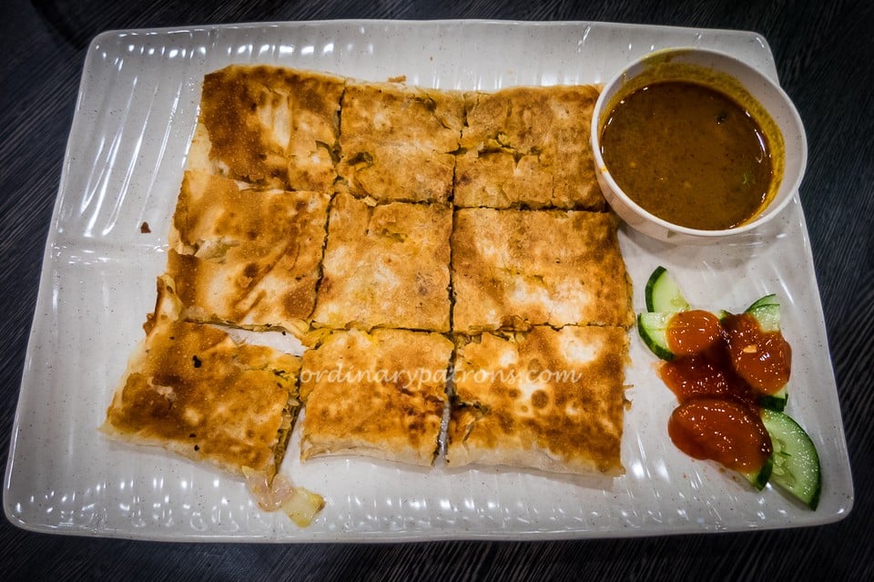 Murtabak : An Indian stuffed pancake or pan fried bread, where the filling is a mixture of beaten eggs, minced meat, diced onions and spices.