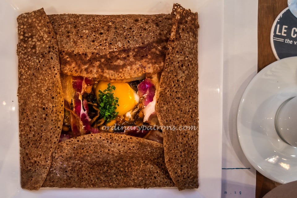 Galette : A French savoury buckwheat flour pancakes which is generally larger and thinner than the regular crepe made from white flour. It is commonly served with cheese or garnished with various combinations of egg, meat and vegetables.