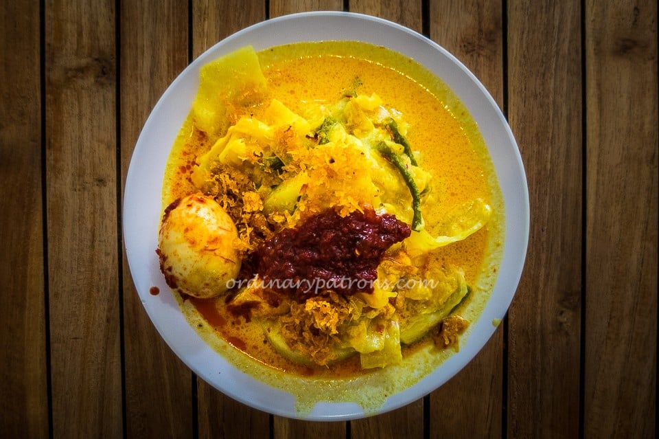 Lontong : A Malay dish made of ketupat (compressed rice cake) cut into small pieces in a vegetable stew with coconut milk.