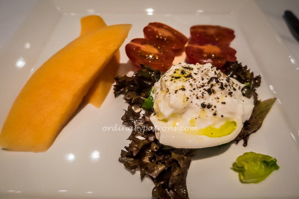 Burrata : A fresh buttery Italian cheese made from mozzarella and cream.