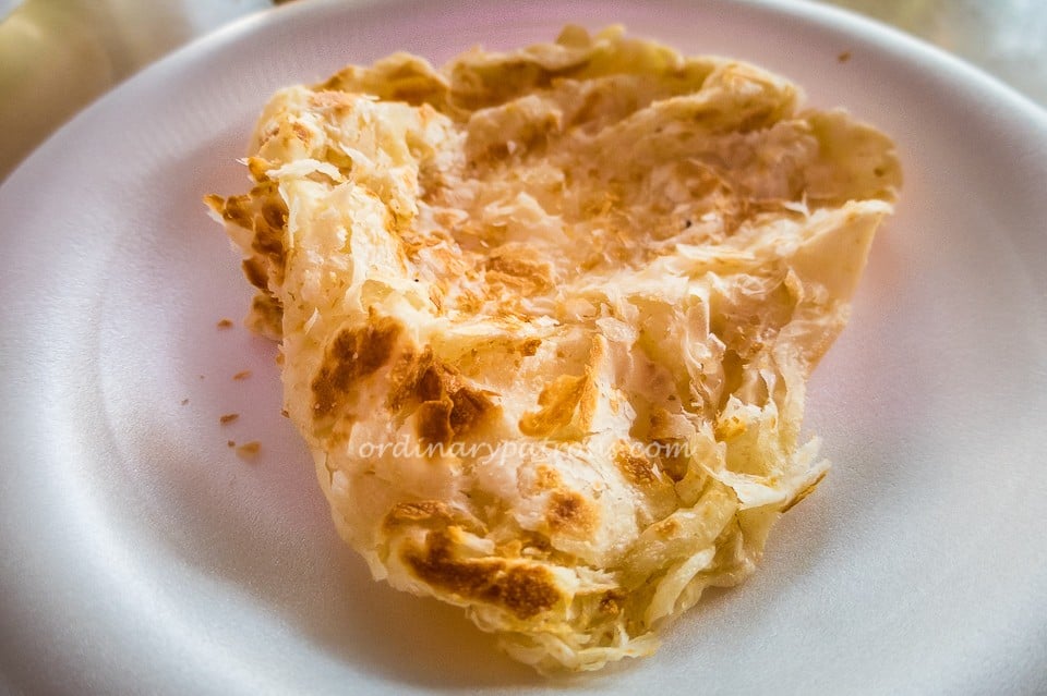 Roti Prata : Literally means Flat Bread. A fried flour-based pancake that is cooked over a flat grill. It is most commonly served plain with curry but egg prata is also popular. It can also be eaten just with sugar. In Malaysia it is called Roti Canai.